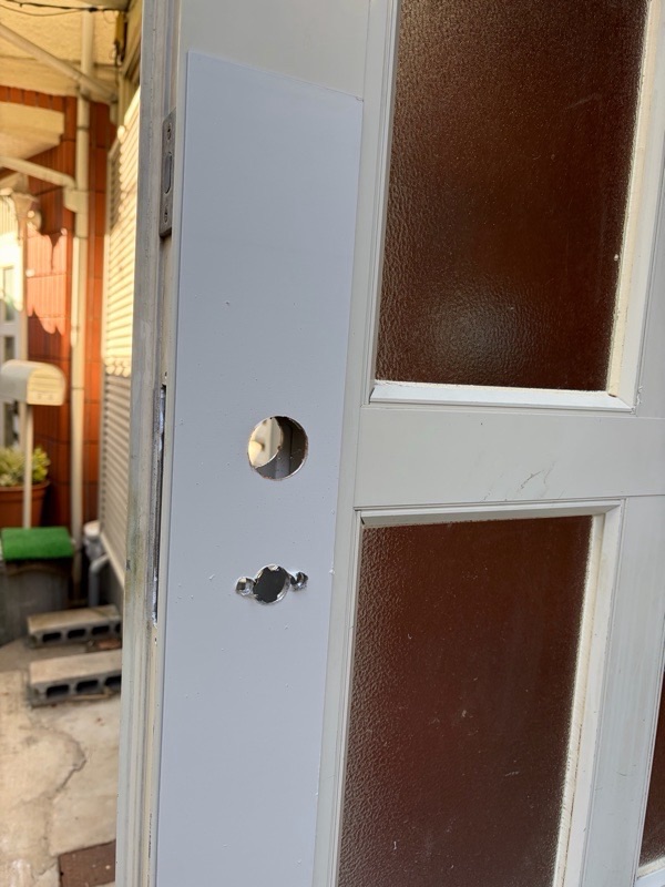 既存のドアに付いてる穴を隠す為に